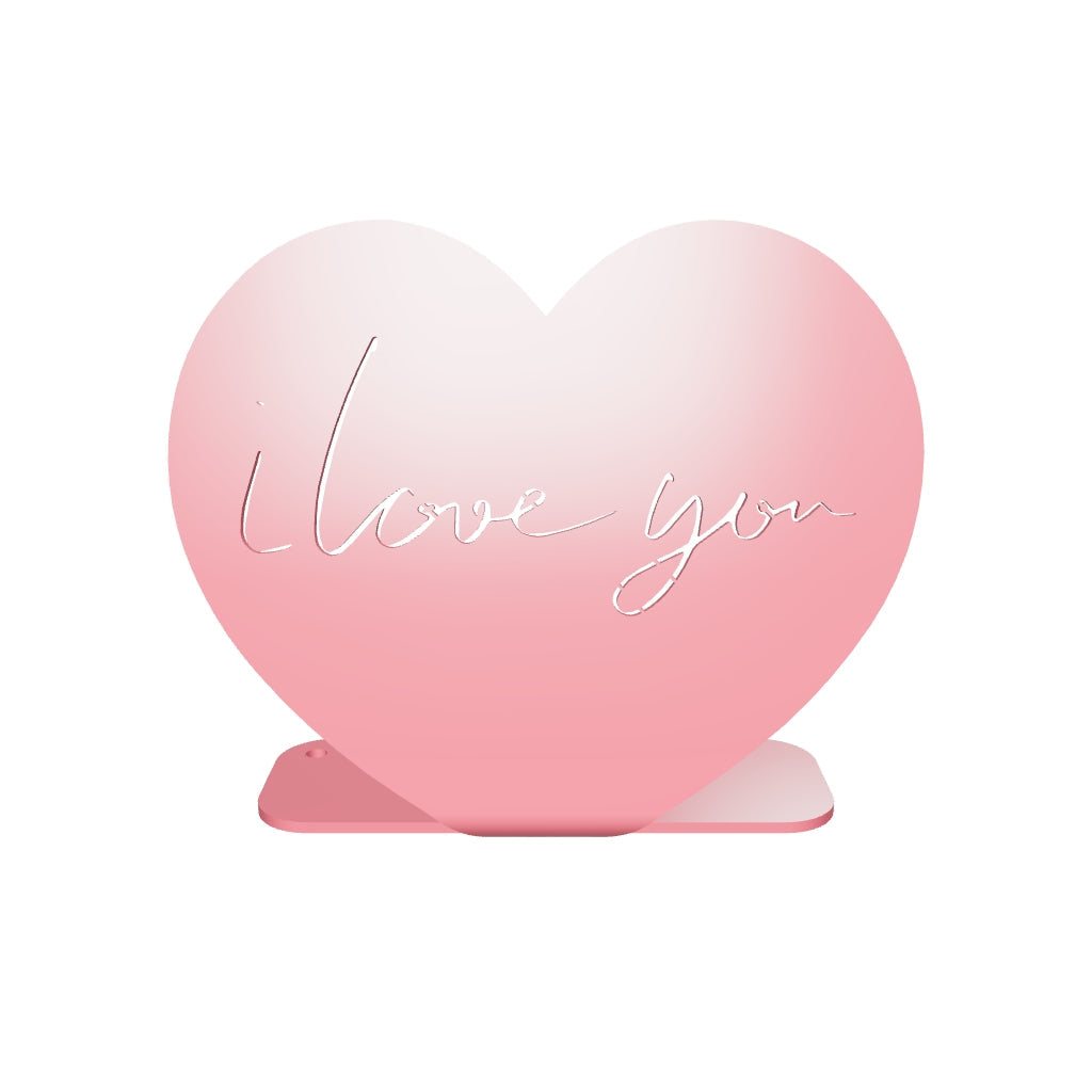 La décoration Cœur avec l'inscription "I Love You" est une création en acier à poser, pensée pour exprimer un message fort et universel. Le texte découpé à l’intérieur du cœur apporte une dimension émotionnelle unique à cet objet décoratif.